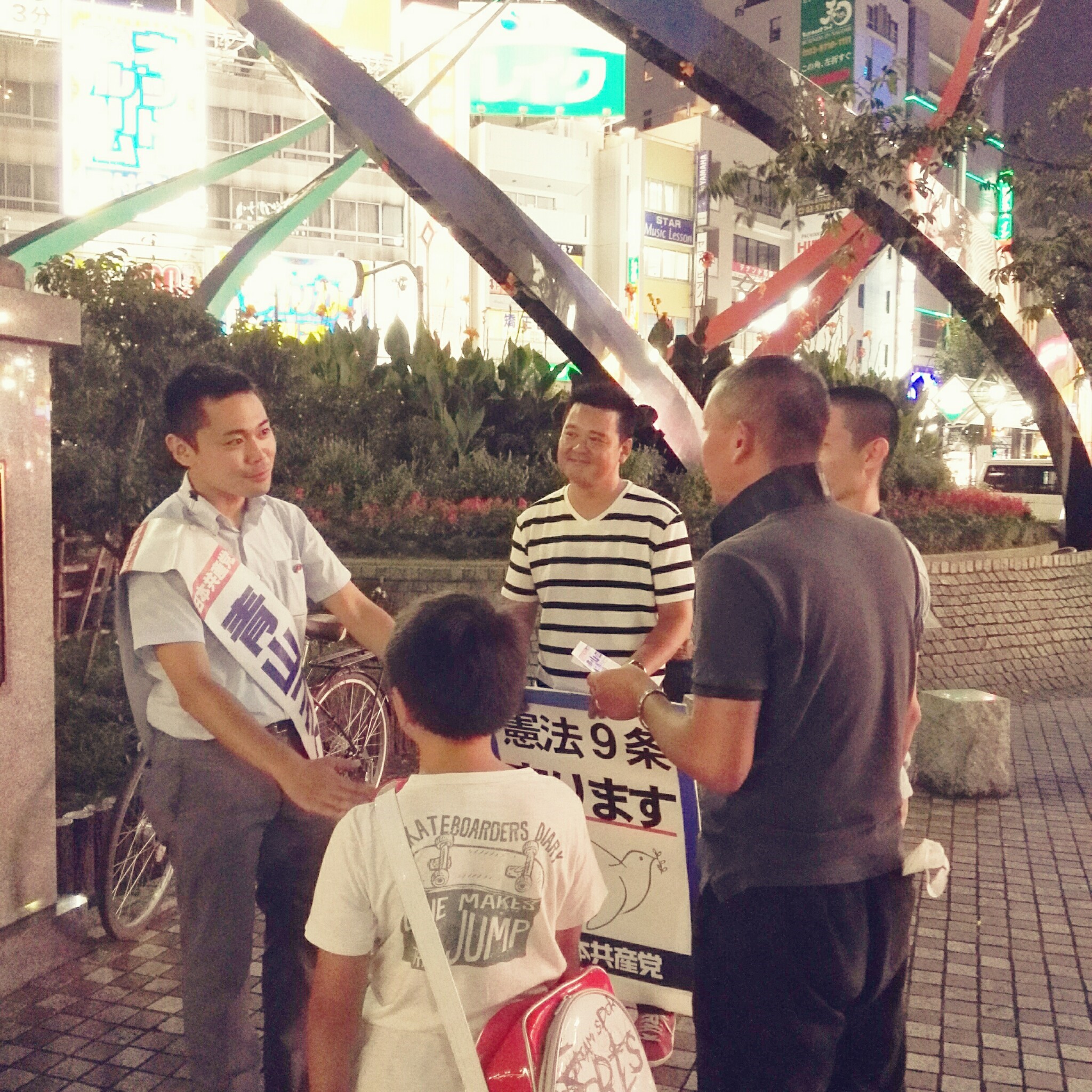 ↓8月30日夕方、JR蒲田駅東口で宣伝している際、声をかけて下さった方々とお話ししている様子