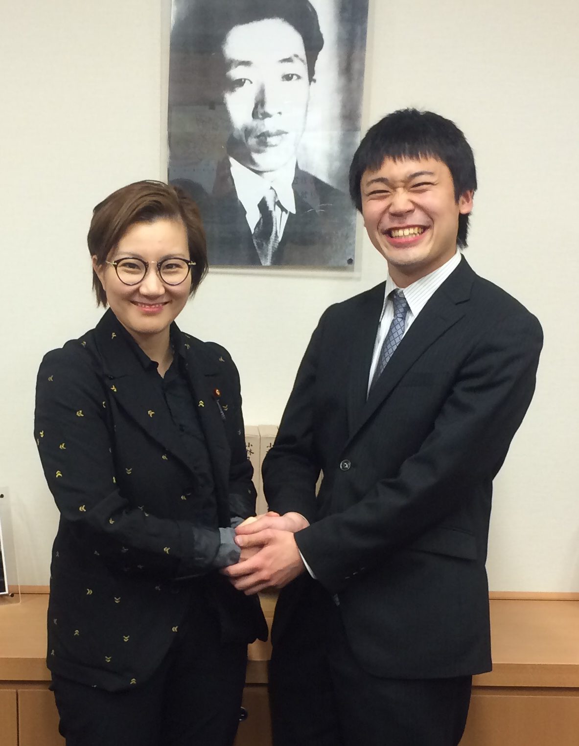昨年、衆院選に立候補すると聞いた時は驚きましたが、ポスターの作成を私がかかわることになり、更に驚きました。彼には驚かされてばかりです。そういえば、卒業後久しぶりに会った時に金髪になっていたことにも驚かされました。